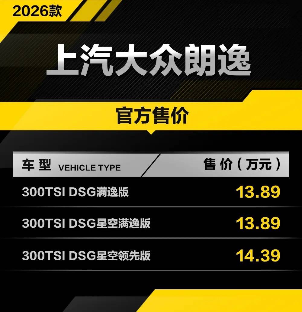 上汽大众近日低调推出三款朗逸改款车型,官方指导价锁定在13.89万至14.39万元区间。在新能源车型加速渗透市场的背景下,这款传统燃油车常青树的定价策略引发行业关注。尽管终端优惠尚未公布,但横向对比同级竞品,其价格竞争力已面临显著挑战。